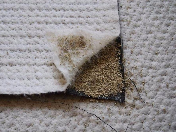 膨潤防水毯是一種用于人工湖泊水景、垃圾填埋場、地下車庫、樓花園、水池、油庫化學(xué)品堆場等防滲漏的土工合成材料,它是由高膨脹性的鈉基膨潤土填充在特制的復(fù)合土工布和無紡布之間,用針刺法制成的膨潤土防滲墊可形成許多小的纖維空間,是膨潤土顆粒不能像一個(gè)方向流動(dòng),遇水時(shí)在墊內(nèi)形成均勻高密度的膠狀防水層,有效的防止水的滲漏。膨潤土防水毯按生產(chǎn)工藝可分為:針刺法鈉基膨潤土防水毯、針刺覆膜法鈉基膨潤土防水毯以膠粘法鈉基膨潤土防水毯。 針刺覆膜法鈉基膨潤土防水毯,是在針刺鈉基膨潤土防水毯的非織造土工布的外表面上復(fù)合一層高密度聚乙烯土工膜。